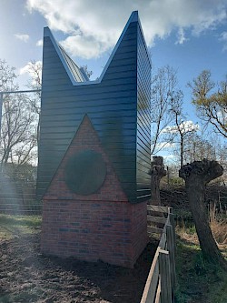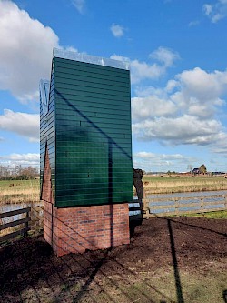 In deze toren, voorzien van een stalen buis en gemetselde gangen, zullen vleermuizen gaan verblijven.