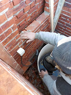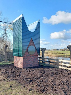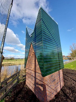 In deze toren, voorzien van een stalen buis en gemetselde gangen, zullen vleermuizen gaan verblijven.