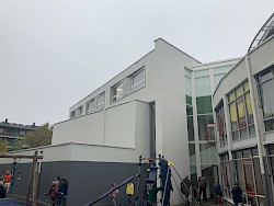 Op deze lokatie hebben wij in de bestaande lokalen de installatie aangepast zodat de lokalen voldoen aan Frisse scholen klasse B. Er is tevens een uitbreiding gerealiseerd met groepsruimte bovenop de gymzaal, het betreft een 1-laagse uitbreiding ten bate van 3 leergropen. Deze uitbreiding heeft een eigen draagconstructie. Alle materialen zijn zo gekozen dat een éénvoudige en snelle bouwmethode te realiseren was.